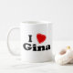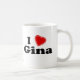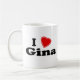 Eu amo Gina! É seu nome Gina? Você tem um marido, um namorado, um membro da família masculino ou um amigo do homem que você saiba amores você? Ou você tem uma esposa, um namorada, um membro da família fêmea ou um amigo fêmea nomeados Gina quem você ama profundamente? Em caso afirmativo, este "que eu amo" a caneca é exatamente o presente que você está procurando! As características de design a letra "mim" na rotulação preta com um coração vermelho na parte superior e na "Gina" na rotulação preta na parte inferior.