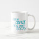 Leia o presente. Eu bebo café e leio canecas de livros. Ilustração do outro lado