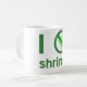 Eu odeio camarão. O design usa letras verdes, um coração verde e o sinal internacional "NÃO" para ler "Eu odeio camarão". Para aqueles que não "amam" isso.