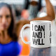 Eu posso e vou. Citação motivacional em uma caneca.