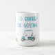 Golfe temido, caneca branca de cerâmica, com gráficos aquarelas de um carrinho de golfe, saco de golfe e bandeira de golfe. Eu preferencialmente jogar golfe em aqua texto azul pode ser personalizado para ler o que você quer. Excelente de presente para qualquer fã de golfe.