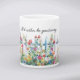 Lindas flores de aquarela ao longo de uma borda de cerca desta caneca. Para decoração sazonal em casa, as canecas são uma fácil mudança de um inverno aconchegante para uma estética primavera colorida. Imagem assistida por IA adquirida com licença comercial. Trabalho de arte: MokoDE