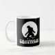 Você acredita em Bigfoot? Refrigere a imagem gráfica preto e branco da criatura mythical legendária do macaco que espreita nas madeiras, iluminada e mostrado em silhueta contra uma lua branca brilhante com texto que me diz a preferencialmente seria squatchin… (apenas como Bobo!)