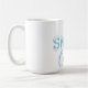 Frase "Eu sou bonitinho na neve" em azul-inverno com um boneco de neve em vez do "o" na palavra "neve". O boneco de neve tem um cachecol azul escuro, um nariz de cenoura em olhos laranja e pretos e boca. A palavra "fofo" é cursiva e as outras palavras estão em impressão com neve no topo e no fundo das palavras. Pode vestir no Natal e durante todo o inverno.