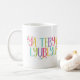 Eu te amo em russo, seu tebya lyublyu, em cores divertidas do arco-íris decoradas com pequenos corações e círculos.