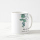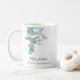 A lama de café deste professor elegante é decorada com folhas de eucalipto aquáticas em tons macios de verde.