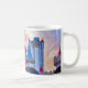 Café Mug apresentando o Hotel Excalibur Castle em Las Vegas Strip em um dia nublado com muitos detalhes arquitetônicos lindas nuvens. O Monorail moderno está passando pelo medieval como se construísse em algum tipo de mundo paralelo. Totalmente personalizável!