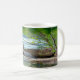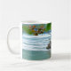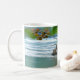 Uma bela cena de um excelente azul de herão na orla costeira nestas canecas de café incríveis.
