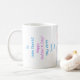 Elegante, trendy, caneca artística para uma mãe excelente, com muitos textos personalizáveis: "Para: Joan Morris" + "Dia de as mães Feliz! Maio 20YY" + "Love, Jim" à esquerda, e, em um elegante design pintado de aquarela, mais textos com as qualidades de uma mãe excelente: Sempre amar + Melhor amigo + Melhor ouvinte + Melhor paciente + Melhor paciente + Sempre solidário + Calmo + Forbondade + Respeito + (no meio) ADORÁVEL e AMAZING.