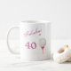 Todos sabem que ela é fabulosa aos 40, e esta caneca vai lembrá-la disso! Ele apresenta seu texto personalizado estilizado em rosa escuro, que diz FABULOUS AT 40. Do lado está um taco de golfe rosa que combina com uma imagem de bola de golfe. O texto e a imagem são colocados em um fundo de imagem de confete dourado, o que adiciona interesse e um pouco de borra. A imagem é repetida do outro lado, com seu nome ou outro texto personalizado em cinzas suaves entre eles. Perfeito para qualquer mulher que goste de golfe, e está virando os 40!