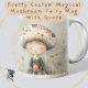 Comece seu dia com um toque de magia e inspiração com esta Coga Personalizada Fada Fada de Cogumelo Bestial. Apresentando uma fada doce de cogumelos cercada por uma paisagem macia e encantadora, esta caneca é mais do que apenas uma embarcação para sua bebida favorita — é um lembrete gentil de que sonhos e magia estão sempre ao seu alcance. A bela citação, "Dream Big, [Name], Magic Awaits," é personalizada com seu nome ou nome de um ente querido, fazer-o um presente verdadeiramente especial. Quer seja uma xícara matinal de café, chá, ou cacau quente, esta caneca trará um sorriso ao seu rosto e calor ao seu coração. Ideal para crianças, sonhadores, e qualquer um que aprecie um pouco de capricho em seus dias, esta caneca é uma maneira perfeita de inspirar e elevar cada gole.