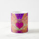 A maioria de nós adora fadas, seja fantasia ou real. Sim, acredito em fadas. Asas delicadas de ouro rodeiam 3 corações com um coração magenta cor-de-rosa e a luz radiando do meio. Lábios cor-de-rosa num canto, linhas cor-de-rosa neon como faíscas e resplendor e fundo roxo