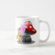 Uma fada colorida bonita debaixo de um cogumelo, numa floresta escura!