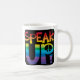 As palavras coloridas arco-íris " FALAM ACIMA!" com um sinal de paz.