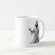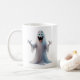 Mug com uma personagem fantasma cartoonista amistosa a sorrir amplamente com grandes olhos expressivos e braços estendidos, dando uma vibração brincalhona.