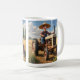 Esta caneca de café divertida apresenta um fazendeiro de desenho animado em um trator. Excelente para aquele homem que ama seus brinquedos!