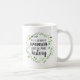 Uma caneca bonita e inspiradora para as mulheres que mudam o mundo mostra a citação "mulheres bem comportadas raramente fazem história" em letras de pincel, inscrita dentro a corda d'água como coroa azul e verde puro.