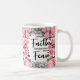A design é linda e envolve a xícara inteira. As flores cor-de-rosa com letras negras são tão bonito, e a mensagem motivacional e inspiradora é a maneira perfeita de começar o meu dia!