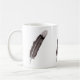 Três penas idênticas de pomba de luto decoram esta simples caneca.