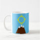 Esta caneca tem uma design de montanhas inspirada pelos nativos americanos em marrom e o sol em amarelo em homenagem ao mês do Patrimônio Nativo Americano. A montanha simboliza o destino, e o sol simboliza a felicidade.