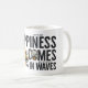Para um amante de surfe, uma design que diz que a felicidade vem em ondas. Boas vibrações, adoráveis dias de surf. Esta design parece realmente eficaz nestas Mug