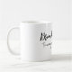 Uma caneca de café branca simples e básica personalizada com seu próprio nome e mensagem especiais