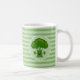 Brócolis de desenho verde com um sorriso feliz em um fundo verde e riscado.