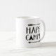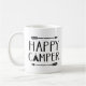 Canecas de café impressas personalizadas com design de "Camper Feliz" preto e branco de tendências, com borda de seta tribal e gráfico de árvore fofo. Use as ferramentas de design para adicionar seu próprio texto e fotos para criar um design de tipo.