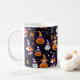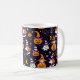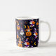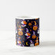 Um padrão de tema do Dia das Bruxas com várias abóboras com rostos talhados felizes entalados nelas. O padrão foi gerado por I. A. e tem um fundo preto. Você pode ter este padrão repetitivo impresso em qualquer produto que seja adequado para impressão completa e que possa ser associado ao Halloween.