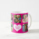 Adicione 7 fotos e crie uma engraçada grade personalizada de colagem multifoto, trendy hot rosa magenta, caneca de café magenta com um coração bonito e um roteiro de retro chic para sua mãe. ++++++++++ Fácil de personalizar com suas imagens, texto e assinatura quadrados personalizados. Pode ser um belo presente de guardiã para o Dia de as mães, seu aniversário, aniversário de família, Natal ou qualquer outra ocasião.