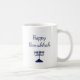 Feliz caneca de café Chanucá, com uma simples menorah azul e design de tipografia de guião. Com a inscrição personalizável branca, você pode adicionar seu próprio texto. Uma maneira festiva de aproveitar sua bebida quente favorita.