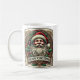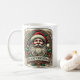 Uma caneca festiva com um emblema de Natal com Papai Noel, folhas sagradas e padrões clássicos de férias, perfeita para espalhar alegria sazonal com cada gole.