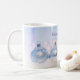 Esta caneca de Natal apresenta bolhas bonitinhas em uma cor azul brilhante de gelo com luzes de boque no fundo. Um belo presente para as férias de Natal ou aniversários de inverno!