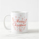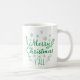 Esta caneca diz "Feliz Natal Y'all" de ambos os lados. Uma está em uma fonte vermelha e a outra em uma fonte verde que pode ser alterada para a cor de seu gosto.