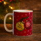 Espalhe um pouco de alegria natalina com esta caneca festiva, apresentando um desenho de duas decorações de árvores ou baubles em um galho de árvore do Natal, um ouro brilhante, o outro vermelho brilhante. Use "Personalize esta modelo" para mudar o "Feliz Natal! & Um Feliz ano novo!", se desejar.