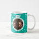 Feliz Natal Verde Floco de Neve Floco de Natal Foguete Fora de Natal. Design de Natal bonito com uma foto na bola de Natal com um fundo verde em floco de neve. Adicione sua foto e personalize o texto na caneca.