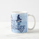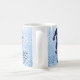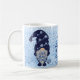 Gnomos azuis bonitos com flocos de neve e chapéus sobre um fundo azul claro brilhando.