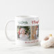 Esta caneca de Natal faz um presente de Natal personalizado único para a mãe, com 4 fotos e uma mensagem personalizável.