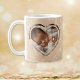 Torne esta temporada de férias extra especial com nossa caneca de Natal personalizada para a mãe! Com um belo fundo dourado e floco de neve branco, esta caneca festiva mostra uma foto em forma de coração do seu bebê, acrescentando um toque pessoal e sincero. As palavras "Feliz Natal" são exibidas, fazer um presente perfeito que combina calor, amor e alegria de férias.