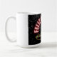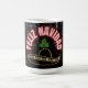 Celebrar o Natal com um talo latino com esta caneca festiva de férias apresentando o texto curvo "Feliz Navidad" com neon sombrero e holly sobre fundo negro com queda de neve.