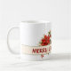 Feliz Pai de Natal Mug. Uma fita colorido creme com o texto: Feliz Pai de Natal com decoração aquosa de Poinsettias brancas e vermelhas, groselhas e folhagem. Opcional para Personalizar o texto. Este é um presente de Natal perfeito com floral de inverno eterno que ele pode usar ano após ano. Dê ao seu pai uma caneca favorita para a temporada de Férias.