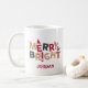Uma caneca de café de Natal colorida e festiva, com Feliz e Design de tipografia brilhante. Ele pode ser personalizado com o nome ou texto de sua escolha.