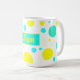 Tropical Happy Vibes Sam adiciona seu nome Coffee Tea Mug Cup para adicionar à sua coleção de bebidas residenciais / de escritório / de negócios. Uma ideia legal de presente/presente para todos aqueles que amam design personalizado, vibrações positivas, itens personalizados, cores pastel felizes etc. Altere o nome para atender às suas necessidades. Verde turquesa, azul, amarelo.