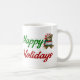 Mug com feriados felizes em texto 3D e ursinho de pelúcia com presente. Mug disponível em vários estilos e cores. Faz um presente de Natal excelente para beber bebidas quentes em noites frias durante as férias.