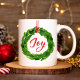 Celebre a alegria da época de férias com a nossa festiva caneca de café Wreath. A caneca de Natal apresenta uma coroa de aquarela verde pendurada por uma fita vermelha com "Joy" em um roteiro vermelho.