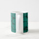 formas abstrato, caneca de férias personalizada. Matizes festivos de borras verdes e douradas falsas com linha de modelo para nome ou iniciais.