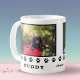 Cachorro Bonito 2 Fotos Feriados em Patas Negras Mantenha a Mug. Design com patas pretas e 2 fotos personalizadas - você pode adicionar 2 fotos de um cão ou usar a caneca para dois cães se for dono de 2 cães. Personalize com seus nomes e um ano ou qualquer outro texto, e faça sua própria caneca de Natal doce.