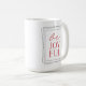 Curve-se com seu café, chá ou chocolate quente favorito na nossa caneca festiva e moderna de férias. Chic e design mínima apresentam "alegria" na tipografia vermelha vibrante, enquadrada por bandas finas e crocantes de preto para um aspecto geométrico na moda.