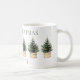 Esta simples e mínima caneca de Natal apresenta pequenas árvores de Natal rústicas com luzes brancas. Personalize com sua escolha de texto e nome especiais para feriado.