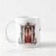 Uma de uma espécie de caneca apresenta uma encantadora porta aquática adornada com verde de férias, com uma coroa feita de pínus cones, bagas e folhas no centro. Acima da porta, uma terra do mesmo verde cai pelos lados, moldando a porta com arco vermelho profundo. A porta em si é uma sombra vermelha profunda e rica. Duas árvores verdes brancas e congeladas, altas em ambos os lados da porta. A cena é colocada contra um pano de fundo de chão macio e coberto de neve. O efeito geral é caloroso e convidativo, evocando o espírito aconchegante da época de férias para mostrar seu apreço.